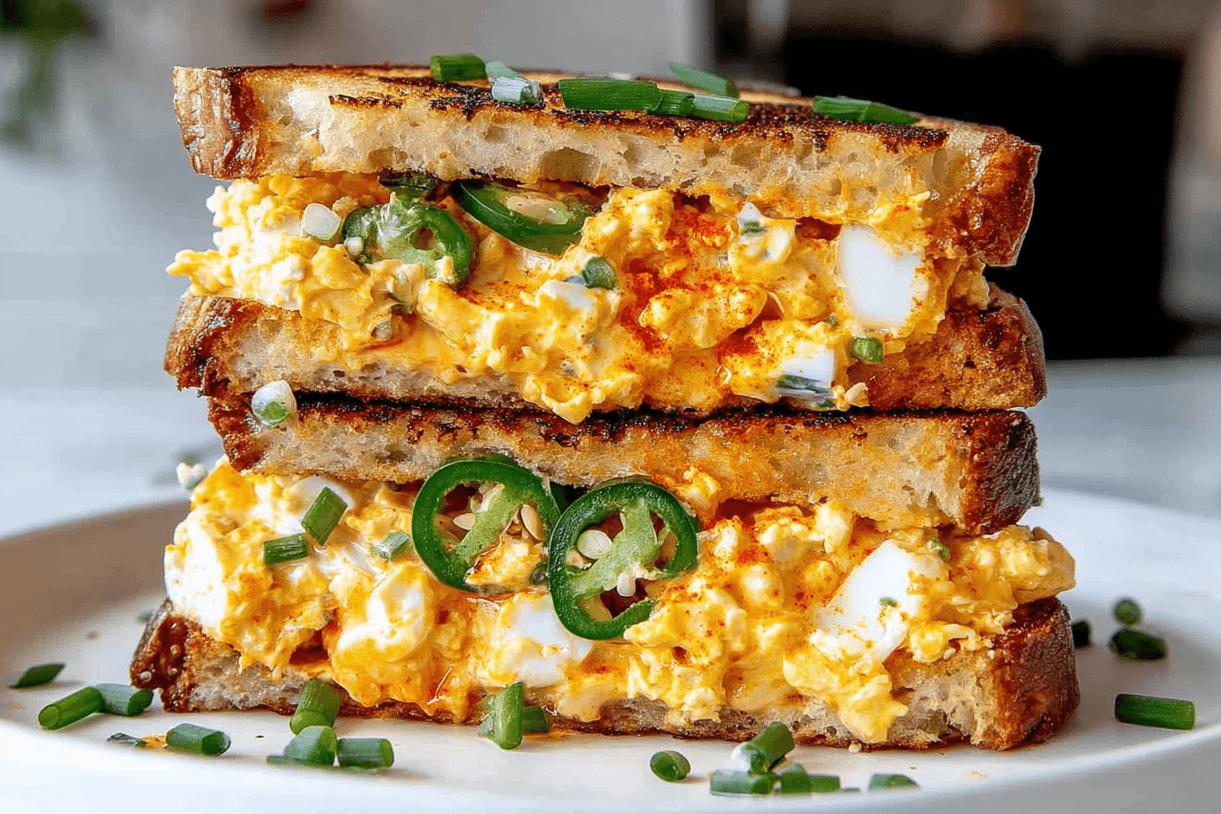 - Assemble: If desired, toast a slice of bread and spread a layer of sliced or mashed avocado on top. Place the crispy egg salad on the avocado layer and add a few slices of jalapeño for an extra kick. Serve warm and enjoy immediately!