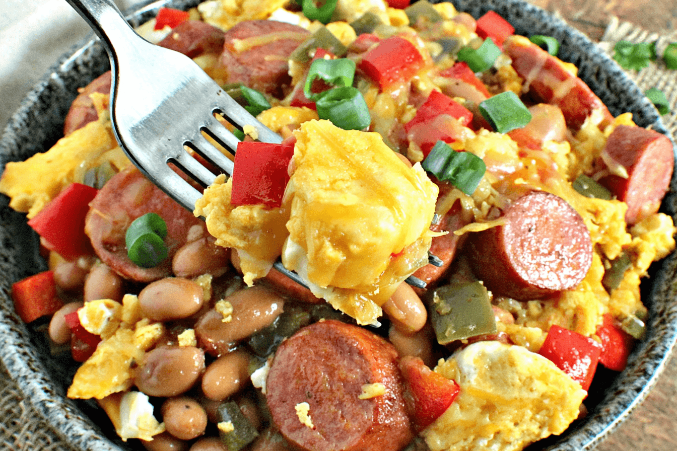 Breakfast Skillet with Sausage, Eggs, and Beans