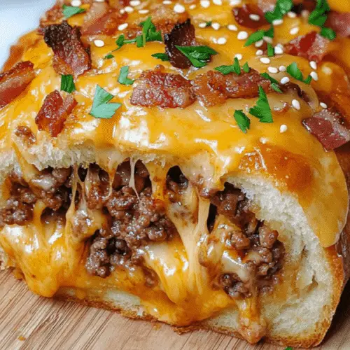 The easy garbage bread recipe turns leftovers into a delicious meal. Imagine crispy bacon, savory ground beef, and gooey cheese in soft French bread. It’s a quick and tasty option that everyone will love.