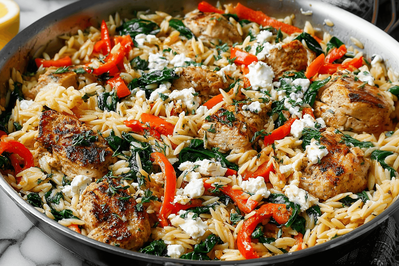 Can I make this recipe ahead of time? Yes, you can prepare the chicken and orzo ahead of time, but be sure to add the spinach and feta just before serving for the best texture and flavor.
